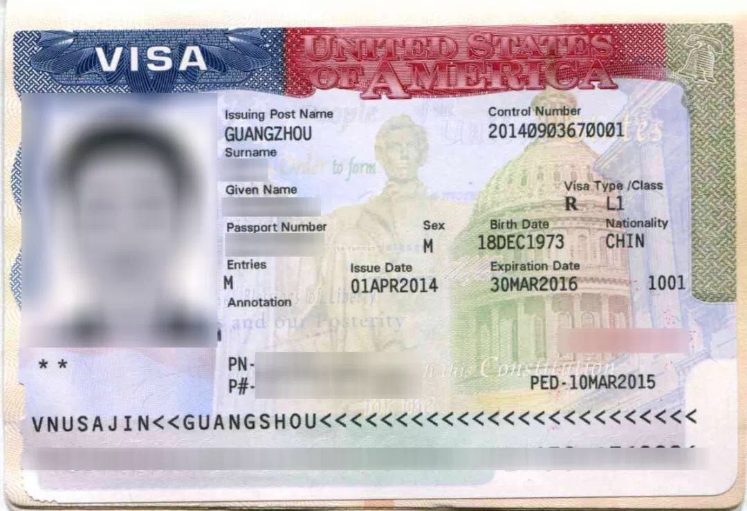 W先生首次申請L1簽證-美簽頁